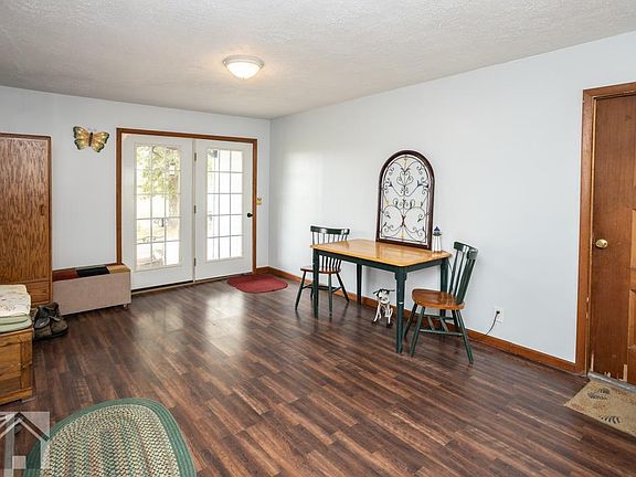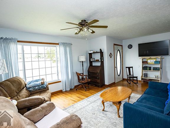 On a shared well! Wood furnace & ventless propane heater (wood pile & propane negotiable, propane tank is leased). Also on septic. Average monthly utilities are $75! Those windows are double hung, double paned vinyl & they tilt for cleaning. The roof is metal & most of the flooring is wood, w/tile flooring in both bathrooms. 1 of the bathrooms has been remodeled & it's huge! The garage is oversized - perfect for a work station; plus there's a 16'x20' shed & a 2-car carport! There's a breezeway between the house & garage that would make a nice office. The large eat-in kitchen offers stainless & white appliances, double sink w/window & a closet pantry. Mature trees, great view! Covered front porch & a deck.