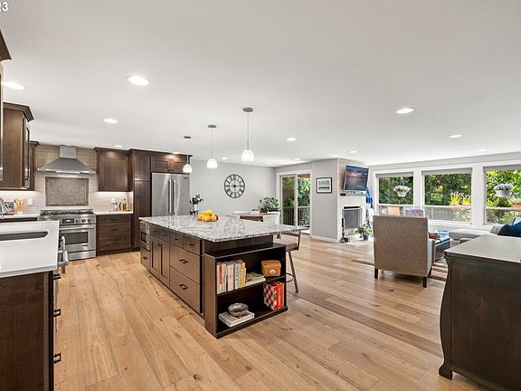 This style savvy home was remodeled to create a beautiful, open, and entertaining plan. The high-end kitchen remodel showcases modern wood cabinetry, a 6 burner JennAir gas cook-top, loads of cabinet space, and a large 9-ft eating island with granite and contrasting counters with quartz. So many thoughtful details. Adjoining the kitchen is a dining area and family room wood burning fireplace and tile surround. High quality engineered floors throughout most of the main. The main level Primary features, engineered hardwoods, dual closets, and a remodeled bath. Additionally, there are two other bedrooms on the main, a laundry room and full bath. Downstairs you will find a secondary family room, bedroom, and nearby bath. This is a perfect place for guests or an office. The tranquil backyard encompasses beautiful mature trees, a new Trex composite deck and flat yard space, all overlooking a serene green space with a babbling Creek that meanders through. Copper Creek is a wonderful neighborhood that offers 4th of July parades and holiday displays. The local firework show, and hot air balloon festival are just some of the great events nearby. Enjoy Cook Park, canoe along the Tualatin River, and attend Tigard High sporting events. Bridgeport Mall and Traders Joe's are both nearby!