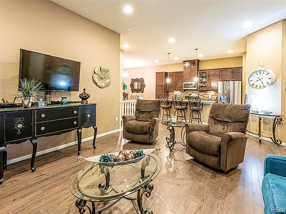 Stunning Paired Home in the beautiful Leyden Rock community has such a rich curb appeal with stone exterior & 2-Car side load garage with a large window providing lots of light. You'll love this amazing Ranch style open floor, plan with high ceilings & luxurious finishes everywhere you turn. The great room & kitchen flow beautifully together & there's a nice study nearby so you can easily work at home. You'll fall in love with the gourmet kitchen with lots of rich kitchen cabinetry, a large kitchen island with quartz counters, stainless steel appliances & a large eating space area that flows out to your back deck. The large Laundry/Mud room is conveniently located off the kitchen with a gorgeous contemporary rolling door that leads to the garage. The large main floor Master Suite is the retreat you've been dreaming of with your very own private bathroom with quartz counters, double sinks & large oversized shower & two beautiful contemporary rolling doors. You'll will also be thrilled with your large walk-in closet too. There's also a 2nd Bedroom on the main floor with access to a full bathroom across the hall. Head downstairs to your amazing finished basement with a large open family room, game room or media area and a dedicated space that would allow you to build your dream wet bar if desired. There is a large 3rd Bedroom in the basement with easy access to the bathroom or family room. You'll be happy with the large storage room and the additional storage right under the stairwell. This beautifully decorated Home with amazing space is the one you've been dreaming of and only walking distance to the park & tennis courts, plus a fabulous community pool. You'll be thrilled with shopping at Flatirons Mall or quick drive to Boulder, plus a new Grocery Store, Gas Station and lots of other stores nearby. Low maintenance living with lots of neighborhood amenities and gorgeous views of the Flatiron Mountains & wonderful access to hiking & biking trails too!