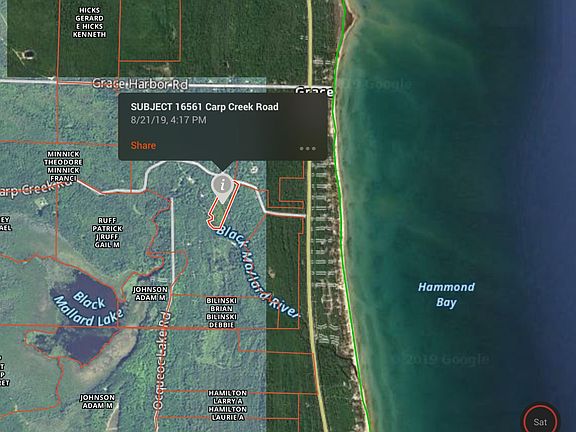 7 acre wooded parcel on a private road near Hammond Bay. The Black Mallard River runs along the entire back of the property creating a natural boundary.