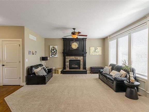 - Features: Carpet, Ceiling Fan(s), Fireplace