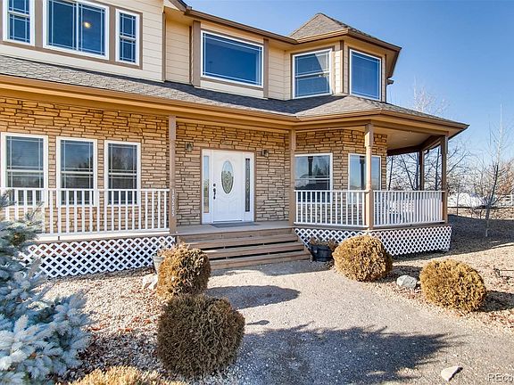 Solid custom home on acreage in Eagle Shadow. This home is built on forty two, twenty three foot deep caissons and features hardwood, tile and carpet flooring, granite counter tops in the kitchen, 42 inch cabinetry with soft close drawers, a large master bedroom, three good sized secondary rooms, a main floor office, formal dining and living areas, a grand staircase that was featured in RW Industries magazine and a finished basement with a rec room and a full bath. Outside there is a wrap-around front porch, two decks, and an awesome view of Long's Peak. The garage is an over-sized three car with plenty of room for the mechanic in the family. All appliances stay including the washer and dryer. Country living that is city close. Easy commute to Denver or to the north via Hwy 85 or I 25. Put this one on your list.