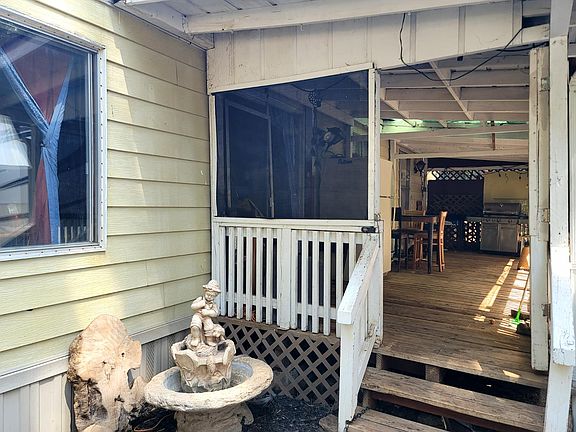 Here's a unique opportunity to live on a double lot in the picturesque senior community at Pioneer Creek Village! This lot features a 2-car carport and a built-in workshop and storage behind, with enough space to park an RV, boat, and several vehicles or hobbies together! This home boasts a 5-year-old roof and 2 covered patios! Inside, the living area features a cozy wood-burning stove set against a stunning real brick wall. A built-in dining buffet with shelves and a large mirror lead you to an updated kitchen with a curved countertop. Both bedrooms offer generous walk-in closets, with the primary bedroom having a separate tub and shower. A convenient Jack and Jill bathroom serves and an inside laundry room. All appliances are included! Great bones, beautiful backdrop, and lots of SPACE!