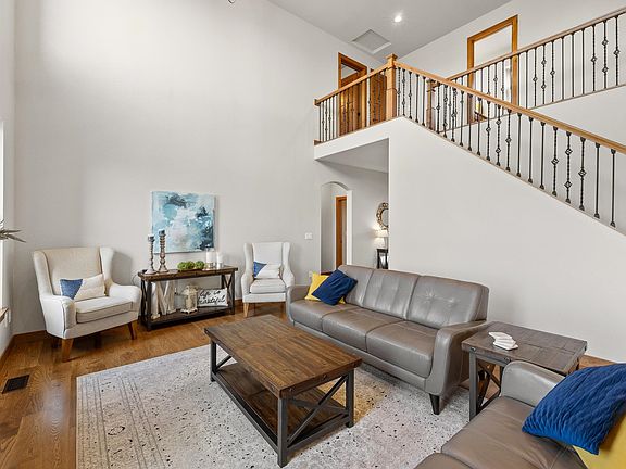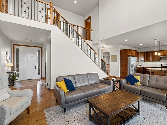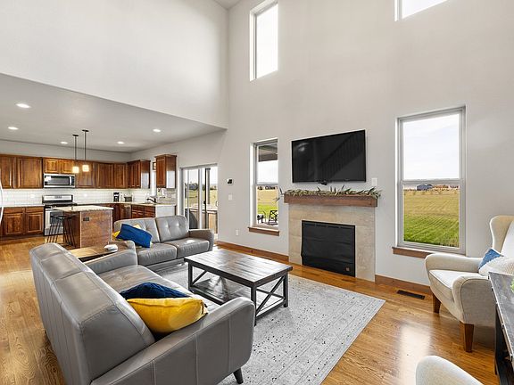 Listed by Jeremy Kahler, KWBH, 605-381-7500. Stunning 1-owner home combining quality craftsmanship with stylish flair into a home you don't want to miss! *The spacious great room sets the tone for this home- 18' ceilings with large windows and plenty of natural light, rich hardwood floors and a gas fireplace for style and warmth *The gourmet kitchen is the heart of this home and has knotty Alder cabinetry with crown molding, granite countertops, a Whirlpool stainless steel appliance suite and a large island for seating and storage *Convenient main floor laundry and a half bath on this level *Main floor primary suite has an ensuite 4-piece bathroom with double vanity and a large walk in closet *Upstairs has 2 additional bedrooms and 1 full bathroom *Finished basement has an 'L' shaped family room with dry bar area, 2 egress windows and a floating electric fireplace *1 additional bedroom, home office, 1 full bathroom and a storage/mechanical room complete this level *Attached 3-car garage with storage/workspace and pedestrian door to back yard *Outside has an impressive covered concrete patio, complete with built in gas grill station- great for bbq's with friends and family *Bonus seating space too- bring your favorite firepit and patio seating *Flat, landscaped back yard with recently planted tree line *Wonderful curb appeal out front with upgraded siding with stacked stone accents and tasteful landscaping. A beautiful country setting with great views- call today!