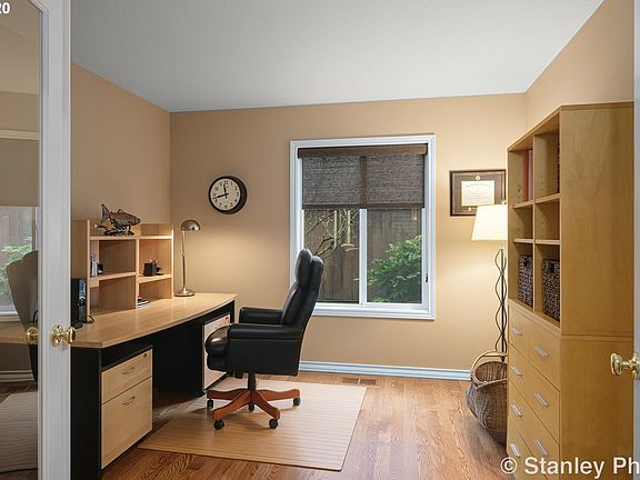 Custom built home backing to private natural green space. STUNNING LIKE NEW condition! Designer paint & finest appointments thru-out. Spacious Open floor plan with vaulted ceilings is bathed in natural light. New Solid Oak Hardwood flooring on main. Professionally designed & installed landscaping with hot tub, natural stone fire pit & hardscape surfaces. Private Master Suite views trees & gorgeous green space. All new Luxury Master Bath. Built-in Vac System. A/C. ** Don't miss 3-D Tour ** A 10+!