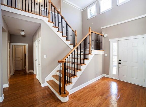 • Interior: Entrance Foyer, Hardwood Floors, High Speed Internet Available, Walk-In Closet(s), Wall/Wall Carpet, 9 ft + Ceil Main, Bookcases, 9 ft+ Ceil Upper, Disp Attic Stairs