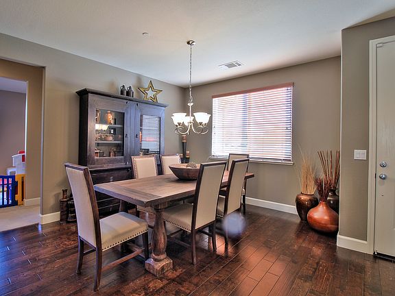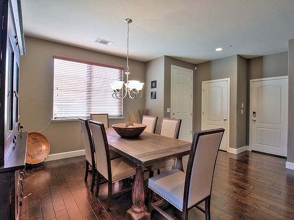Built in 2012 by Meritage Homes, this single story home has been beautifully upgraded and very well maintained by the original owners. Situated on a corner lot, the home boasts a desirable open floor plan with granite Kitchen and Family Room, Formal Dining Room, and spacious Master Bedroom Suite with dual vanity and walk in closet. Bonus room easily converted to 4th bedroom. Upgrades include hardwood flooring, professionally painted interior with designer colors, 6" baseboards, custom blinds, recessed lighting, ceiling fans, marble topped vanities, and more. Highly upgraded Backyard includes stamped concrete covered patio, separate dog run and garden area, and mature landscaping. Walking distance to elementary school and park.