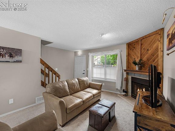 This charming 3-bedroom, 4-bathroom townhome is nestled in the desirable Rockrimmon neighborhood, known for its family-friendly atmosphere. Just steps from your door, Ute Valley Park features destination-level trails for hiking, mountain biking, and dog walking, while Pinon Valley Park offers sports courts, playgrounds, walking paths, and picnic areas, all with stunning views of Pikes Peak. Inside, the main level welcomes you with a spacious living room that boasts a cozy fireplace, seamlessly connecting to the dining area. The attractive kitchen features light wood cabinetry and beautiful wood floors, with a door leading to a private patio perfect for outdoor barbecues. A convenient half bath and laundry closet complete this level. Upstairs, two bedrooms each offer generous double closets and en-suite bathrooms equipped with skylights and LED Rainfall Shower Panel Systems. The fully finished basement includes a third bedroom with an attached full bathroom, providing flexibility for use as a family room or home office. It also features extra storage, a new sump pump, and a high-efficiency Trane furnace equipped with a smart thermostat, fan option, and built-in humidifier for year-round comfort. With a well-managed HOA and a strong reserve fund covering landscaping, maintenance, and insurance for common areas, you can spend your free time enjoying what truly matters. Located just minutes from the iconic Garden of the Gods and convenient shopping and dining, this townhome is more than just a residence, it’s a lifestyle of comfort and adventure. Don’t miss the opportunity to make it your own!