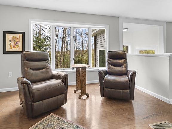 Discover the perfect blend of country living and modern comfort on this picturesque 7-acre property, featuring an elegantly updated 3-bedroom, 2-bathroom home. Step into a light-filled, two-story foyer that leads into a spacious living room and cozy sitting area, complete with a charming brick wood-burning fireplace. The formal dining room opens to a beautiful back deck through glass doors—ideal for entertaining or enjoying quiet evenings outdoors. The kitchen is bright and functional, offering ample counter space, generous cabinetry, and a convenient pantry closet. The private primary suite occupies one wing of the home, showcasing an expansive wall of closets and a beautifully remodeled en-suite bathroom with a luxurious walk-in tile shower. On the opposite side, you'll find two additional bedrooms and a full bath, creating an ideal layout for family or guests. The full, open basement offers excellent potential—ready to be finished for additional living space or perfectly suited for storage, a workshop, or hobbies. Recent updates include gutters, tankless hot water heater, central heat pump, additional insulation, primary bathroom renovation, and more! Additional features include a detached two-car garage and three versatile sheds. Enjoy the serene landscape complete with a pond, firepit, and plenty of room to roam. This is your opportunity to experience a nature-filled lifestyle with all the conveniences of a thoughtfully updated home. Schedule your visit today!