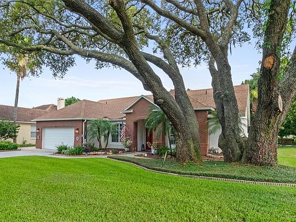 This home offers 3 bedrooms, 2 full baths plus a flex room which could be used as an office/den or 4th bedroom. There is a formal living room off the Florida room and a formal dining room from the kitchen area which has granite counters, island, bar area and a breakfast nook. The kitchen offers lots of cupboard storage and slide out selves in the pantry for each access. The master bedroom is spacious and has a ensuite with double walk in closets. The second bathroom has been updated with shower, flooring, sink, counter and toilets and is ADA accessible. The Florida room has brand new sliders leading out to the large, very spacious screened & lighted lanai which provides for year round entertaining, rain or shine! The front door is updated with storm shutter. All fans and lights were new from 2021. A new fence and walk way was installed on the exterior with updated landscaping and a tiered landscape garden at the rear. The kitchen appliances were replaced in 2021. 2020 improvements include: NEW roof, HVAC system, water heater, carpet in bedrooms, paint throughout.