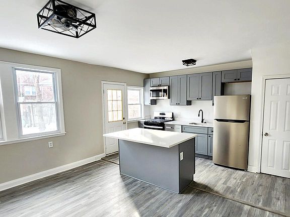 This beautiful 3-bedroom, 2-bathroom townhouse has been completely updated . With its modern upgrades and prime location, this home is perfect for those looking for comfort and convenience. As you approach the house, you’ll be greeted by a charming front porch, perfect for relaxing after a long day. The exterior boasts new, easy-to-care-for landscaping and a stylish new light fixture, adding to the home’s curb appeal. The main level offers a spacious living room that flows seamlessly into the dining room and kitchen, creating an open and inviting space. The dining room features a ceiling fan with an integrated light, both of which can be conveniently controlled by a remote. The fully renovated kitchen showcases new quartz countertops, sleek cabinets, and a stylish island for extra prep space. Brand-new stainless steel appliances, including a stove/oven, refrigerator, microwave, dishwasher, and garbage disposal, complete the kitchen. Luxury vinyl (LV) flooring has been installed throughout the first floor for a polished, cohesive look. Upstairs, the second floor features three freshly painted bedrooms in a modern natural gray palette. Each bedroom is equipped with a ceiling fan that also functions as a light, both of which can be controlled by a remote for added convenience. The updated bathroom on this level boasts a new vanity, new toilet, updated lighting, and fresh modern paint. The hallway provides access to a pull-down attic for additional storage, and new LV flooring runs throughout the second floor for a sleek, contemporary finish. The basement offers even more living space with a cozy den featuring plush new carpeting and fresh paint. At the back of the basement, you’ll find a large storage area with washer/dryer hookups and new LV flooring. The additional full bathroom in the basement is completely updated, featuring a new toilet, new vanity, new sink, and a beautifully tiled shower. The basement has a walkout to a private backyard, which includes a garage with a brand-new roof for added functionality. This home also features significant system updates, including a brand-new central air unit, ensuring year-round comfort. Located within walking distance of Morgan State University and close to Lake Montebello and Johns Hopkins University, this home offers both convenience and charm. With its modern upgrades, easy-to-maintain landscaping, and prime location, this house is truly move-in ready.