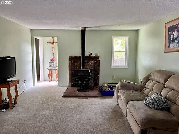 This three bedroom one bath home is situated on a lot providing privacy from road. Enjoy covered front porch, vinyl windows throughout and fenced backyard with gorgeous views. Kitchen has eat area, free-standing oven/range and refrigerator. Living room has woodstove and door to backyard. There is a 10'x12' storage shed with a 6'x12' lean-to for wood storage in the backyard. Washer/dryer stay. Roof is approx. 4 yeas old.