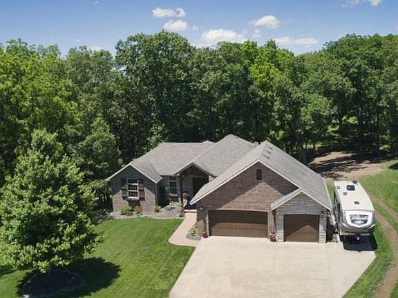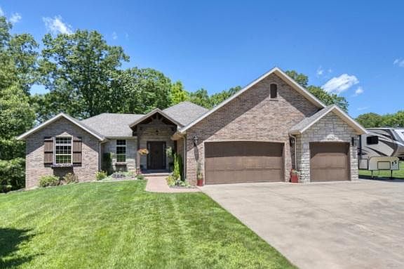 Nixa beauty with 3.23 acres, partly cleared/partly wooded with lots of wildlife. Walk-out basement with 4 BR's (3 up/1 down) and 3 Full Baths featuring lots of rustic flare and cedar accents throughout! You won't be disappointed in the finished basement which has plenty of Living and/or Rec Room space and lots of windows. There's a full ''rustic'' wet bar with sink, plenty of cabinets and room for full-sized frig. You will also find a finished Storage area, a Storm Shelter and a John Deere Room. Home's Kitchen has a large breakfast bar to accommodate multiple seating, a nice Dining area with nature views, a gas stove, wall oven & wall microwave PLUS a nice pantry. Master Bedroom has its own door to private sitting deck and a nice Master Bath with large walk-in shower. House is wired