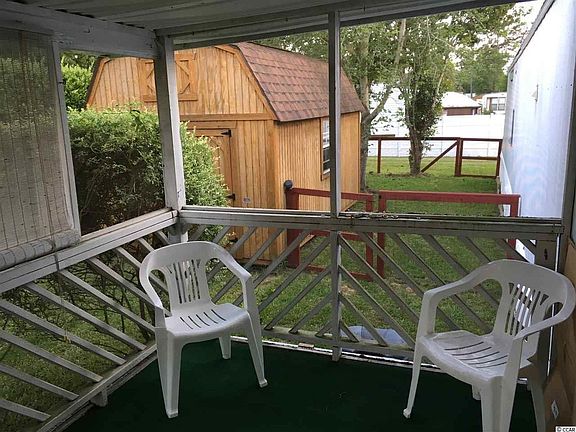 This gem is located in the secluded Crystal Lake subdivision! This 3 BR/2BA is a cute beach oasis. It's within a mile of the Myrtle Beach State Park and the beautiful beach. Not to mention it's conveniently located near Market Common, with so many shopping and dining choices close by. The screened-in porch on the front of the home is a great place to sit back and relax and enjoy your morning coffee. When entering the home, you'll enter into a cozy and inviting living room space. The living room boasts a lot of natural light! Double doors open up to the master bedroom with a full bath and large walk in closet. The kitchen has plenty of cabinet space and counter space. All of the beautiful appliances remain, including the stainless steel refrigerator, smooth-top range, and stainless steel microwave. The full size washer and dryer also remain. Down the hall you'll find the 2nd and 3rd bedrooms with a full bath between and storage cabinets for your linens. A few furnishings remain including a washer, dryer, sofa, loveseat, ottoman, end tables, and a set of bed rails. The large storage building w/window, loft, & electricity is the perfect little workshop, he-shed, or she-shed. There is also a fenced in area, which is perfect for your pets to enjoy the outdoors when they're not lounging on the screened-in porch. This home has been very well kept and is ready to move in. Whether you are looking for a primary home or a second home for your ocean getaways. Don't miss out on this one! Schedule your showing today!