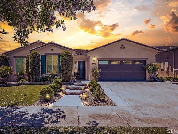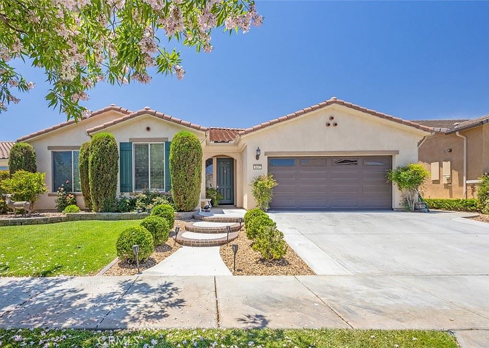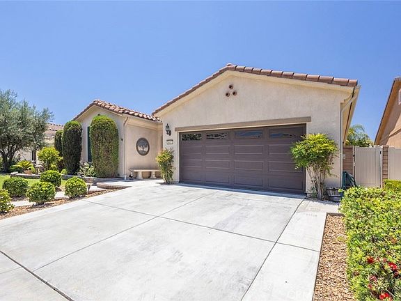 Upgraded and Impeccably Maintained, Move-In Ready Home in Solera Diamond Valley a premiere 55+ community by Del Web. Welcome to this stunning Gathering Model specifically designed to encourage get togethers and easy entertaining possibilities. This exceptional 3-bedroom, 3-bathroom turnkey residence spans 2,423 square feet and exudes fantastic curb appeal. Featuring a brick-enhanced guest walk, easy-care landscape, short paver wall, concrete curb edging, rain gutters, wide entryway for a resting bench, and a covered entry, this home is ready for you to move in and make it your own. Inside, you'll find an open-concept floor plan adorned with designer-themed neutral paint, vinyl flooring, crown molding throughout and a tankless water heater. The upgraded kitchen and three bathrooms have the premium cabinet upgrade package. The formal living and dining rooms are complemented by a butler's pantry. The kitchen is a chefs dream, featuring granite countertops, includes the refrigerator, a large island, a breakfast bar, ample storage with a walk-in pantry, and seamless integration into the large great room and informal dining area. The spacious primary bedroom, complete with carpet, a ceiling fan a door leading to the back covered patio, offers an oasis with an ensuite bath featuring his and her separate area sinks, one with a built-in vanity, a separate walk-in shower, a soaking tub, and a large closet. One of the additional guest bedroom includes a private ensuite bathroom and a walk-in closet for ultimate privacy. This home also offers a separate laundry room complete with a utility sink. The backyard features a covered California Patio with a ceiling fan, a large patio extension, and two convenient entry points to the home, supporting easy entertaining, and enjoyment of the backyard a breeze, all surrounded by an impeccably maintained yard with established shrubs and concrete edging. With a 1-foot garage extension that includes a drop zone for extra storage, this home truly has it all. Solera Diamond Valley community center offers a fitness center, walking track, library, billiard tables, meeting rooms, library, sitting areas with fireplace, indoor pool and spa and two outdoor pools and spa. Engage in friendly matches on the Bocce ball, tennis, and pickleball courts, completing a comprehensive range of activities for an enriched 55+ living experience. This home exemplifies luxury and convenience in a vibrant, active adult community.