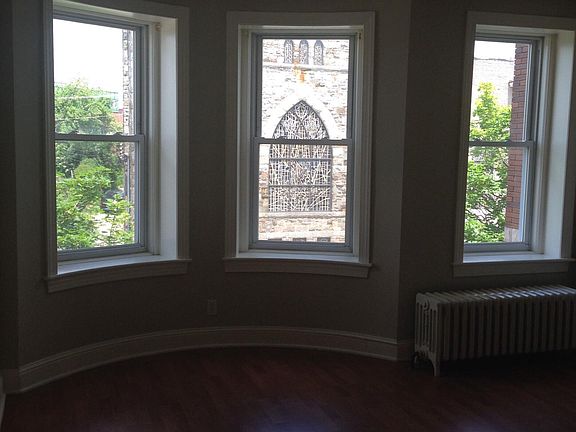 Recently renovated 3rd floor apartment in Smoke Free, well maintained,secure row home . Cherry laminate floors in entry and living room. Carpeted bedroom, Ceramic bath with claw foot tub/shower and efficient galley kitchen with eating/work bar. Available May 15th Reply to schedule a walk thru. Please provide basic information