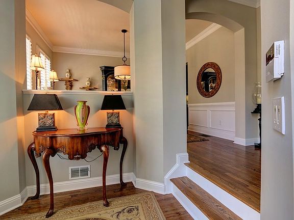 - Interior: Ceilings - Trey, Ceilings 9 Ft Plus, Foyer - Entrance, Hardwood Floors, Foyer - 2 Story, Pulldown Attic Stairs, Carpet, Bookcases, Separate Shower, Walk-in Closet, Gas Logs
