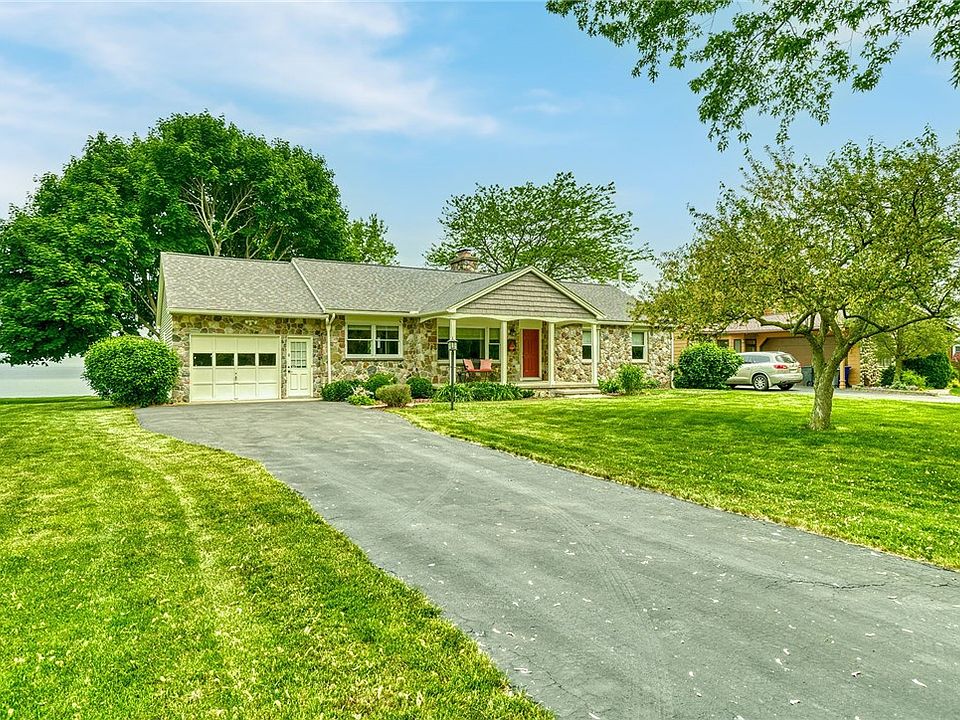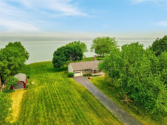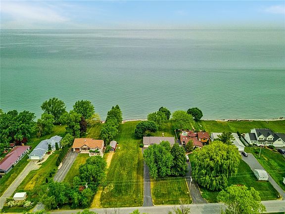 Welcome to this exquisite waterfront ranch home, a true paradise for those seeking tranquility and breathtaking natural beauty. Nestled along the shores of Lake Ontario, this property offers an idyllic retreat where modern comfort meets stunning surroundings. This beautiful home is conveniently located steps from Eagle Creek Marina, ensuring you can enjoy all aspects of the Lake. Open floor plan faces the wall of windows and the family room is adorned by the hand cut Adirondack granite wbfp. The full, dry, finished basement has additional stone wbfp, space heater, cedar closet and walks up to the 1.5-car extra deep garage. The rarely found double lot has a boat garage/storage, a recently reinforced break wall and built-in boat ramp on the west side of the property. Updates include Remodeled Kitchen 2022, Roof, Siding and Gutters 2019, HVAC 2018, and more! Showings begin on Friday, June 9, 2023 at 10:00 am and Negotiations begin on Tuesday, June 13, 2023 at 11:00 am