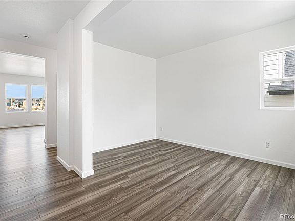 MLS#4617771 Ready Now! Welcome to the Granby at Trailstone, a delightful two-story home perfect for growing families. The open-concept kitchen, dining, and great room, complete with an optional fireplace, keep everyone connected. Cooking enthusiasts will love the well-equipped kitchen featuring an eat-in island and a large walk-in pantry. The first-floor flex space is ideal for a home office or can be converted into an additional bedroom with a full bathroom. Practical features like the entry off the garage and the tech room adjacent to the kitchen make daily tasks easier. Upstairs, you'll find a generously sized primary suite with two walk-in closets, three additional bedrooms, and a spacious loft. Structural options include: raised vanity at secondary bathroom, 14 seer A/C unit, modern 42" fireplace, outdoor living patio, and upgraded rail and spindle.