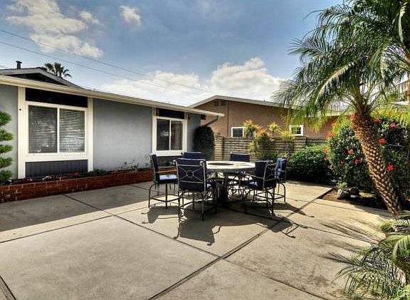 A Must See....You won't Be disappointed! Smartly Done, Expansive Floorplan 1750 sq ft. With Lots Of Space And Custom Features In This Sol Vista Home. Spacious & Well Maintained, Entertainer's Delight Home As You Will See Upon Entering Huge Gated Front Court Yard. This Home Has Tons Of Features: Custom Entry Door, Tile Flooring Throughout Entry, LR, DR, Kit. Charming Sunlit Kitchen Has Tile Countertop, Gas Cooktop, Double Ovens and a very Spacious Breakfast Nook, Smooth Ceilings, Designer Paint, Newer Windows and Glass Slider, Ceiling Fans. Formal Living Room Has Impressive Brick Fireplace w Mantel, Formal Dining Area Open to LR w/ French Doors That leads into Private Back Yard Patio. Huge Family Room Addition (permitted) w/ Crown Molding Provides Lots Of Additional Living Space w/ Glass Slider Opens To Back Patio Surrounded By BW Fencing. Best Of All, Expanded Master Bedroom Has Been Expanded To Nearly Double In Size Includes A Walk-In Closet, Crown Molding and Large Retreat Area, Currently Used as Home Office. Additional Bonus Is A Large Avocado Tree In Front Yard Ready To Harvest As Fruit Is Plentiful. This Home Is Centrally Located In Huntington Beach With Great Access To Best Schools, Bella Terra, Open Parks, And A Short Drive To The Beach. Act Now!