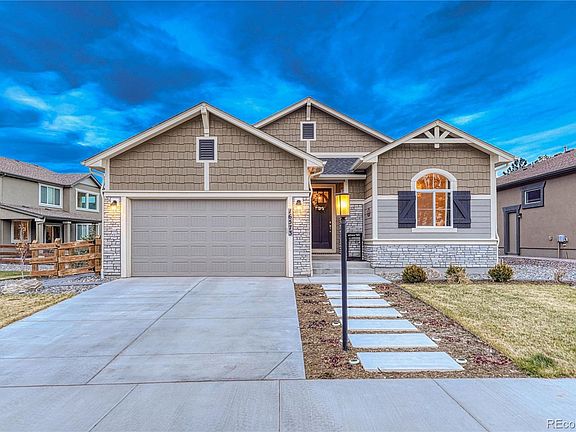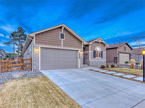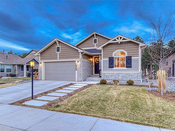 *STUNNING RANCH HOME IN DESIRABLE SANCTUARY POINT *FEELS LIKE A MODEL HOME *MANY UPGRADES *MOVE-IN READY *COVERED DECK *MULTI-SLIDE 90 PATIO DOORS *PROFESSIONALLY LANDSCAPED *FULLY FENCED YARD *WIRED FOR HOT TUB *EXTENDED PATIO FOR MORE OUTDOOR LIVING *UPGRADED LIGHTING *UPGRADED LVP ON MAIN *BONUS CONCRETE SEATING AREA IN BACK YARD *LAUNDRY ATTACHED TO WALK IN MASTER CLOSET *GARDEN LEVEL BASEMENT *220 IN GARAGE FOR ELECTRIC CARS Nestled among the pine trees in Sanctuary Pointe, this light, bright and beautifully maintained 2 year old ranch home provides all of the features for Colorado living. You won't want to miss this professionally designed home with an open floor plan that is better than new! All the work of landscaping, hardscaping and fencing has been done for you. You just get to move in and enjoy it! This home offers a Master Bedroom and 2 additional bedrooms on the main floor, a welcoming kitchen with quartz counters and beautiful tile backsplash, and a quartz island that is truly the heart of the home! Main level living is easily achieved in this home with the laundry room conveniently located off of the master closet. The built in nook for coats and shoes is conveniently located at the entry from the garage and right across from the laundry. The most stunning feature of this home is the multi-slide 90 Patio doors that bring the outdoors in allowing your living space to increase and yet still be protected from the weather on the covered deck.