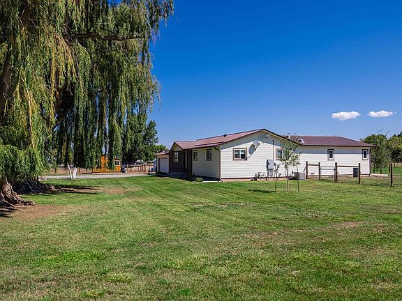 Welcome to peaceful country living on Spring Creek Mesa. This beautifully renovated 4-bedroom, 3-bath farmhouse offers 2,192 sq ft of updated comfort on 3 irrigated acres. Fully set up for horses, chickens, and more. Step inside to a warm, light-filled living room with a large picture window. The open kitchen features knotty Alder cabinets, granite countertops, a river rock backsplash, black stainless appliances, and eastern views. Two bedrooms include private en suites with custom tile showers, granite vanities, and rain glass doors. A versatile bonus room off the dining area offers flex space for a sunroom, family room, den, or home office. Solar tubes throughout the home add soft natural light. Outdoors, enjoy a fully functioning mini-farm with two fenced pastures, a horse shelter, hay barn, tack shed, chicken coop with auto door, four frost-free spigots, and a fenced orchard. Mature landscaping surrounds a large covered patio and a Trex deck with sunshade, perfect for entertaining. No HOA.