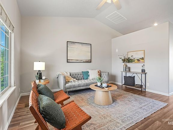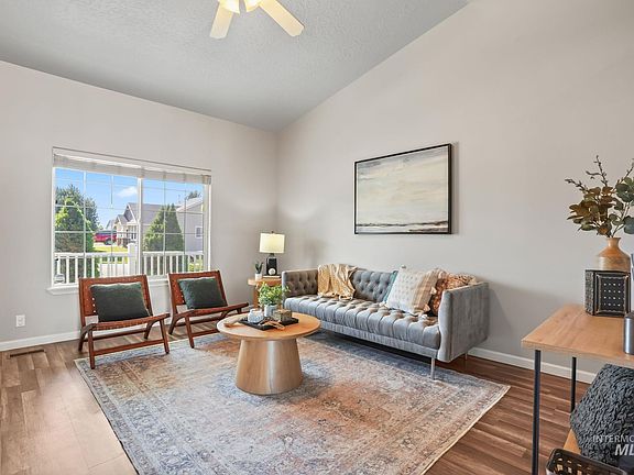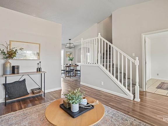 PRICE IMPROVEMENT - Welcome to your new 4-bedroom, 2.5-bathroom haven boasting stunning views of the Boise foothills from both the kitchen window and master bedroom. This meticulously maintained home features a spacious layout with two living areas downstairs, a versatile office/fourth bedroom downstairs, and a large backyard with a cedar planter box. Enjoy modern upgrades including new carpet upstairs, fresh paint throughout, a gas stove, and a new stainless steel sink with a built-in cutting board in the kitchen. Stay comfortable year-round with a new furnace and AC unit installed in 2023, along with a new water heater in 2022. With its convenient location, thoughtful updates, and breathtaking views, this property offers an exceptional opportunity for elevated living.