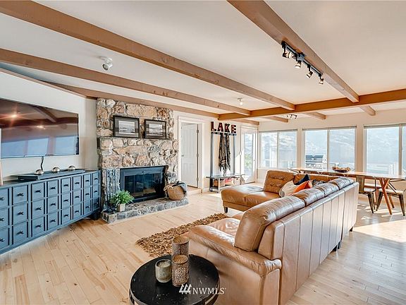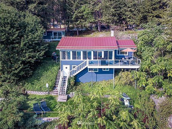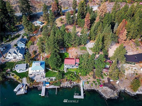 Lk Chelan waterfront- 75' of waterfront with new dock/boatlift. Situated on 2/3 acre, this darling S Shore cabin has 3 living areas providing privacy and fun for everyone. Step into breathtaking views of the lake and an open concept living area. Cabin is updated, fully furnished & turn-key. Play in the water; play games on the lawn; entertain guests; BBQ on the deck; this cabin checks all the boxes. Guests can choose the bunkroom or the Cabana nestled in the trees. Work and play every day!!!