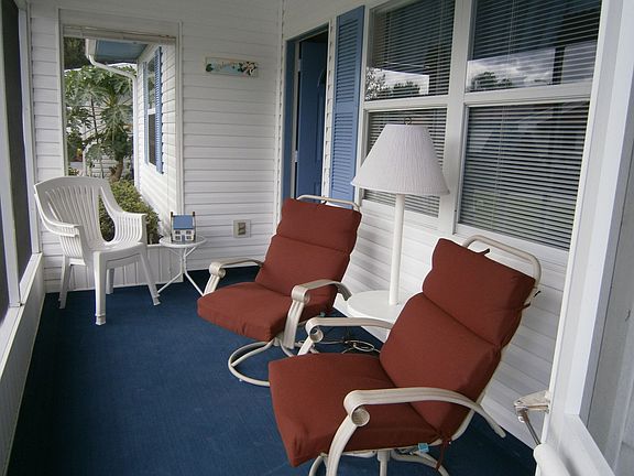 Desirable location in phase three of this 55+ gated community. Enjoy carefree living in this 2 bedroom, 2 bath home with enclosed Florida room over looking serene woodlands. Enter the home through the screened porch into the spacious living and diningroom with an elegant tray ceiling. Master suite has two walk-in closets and oversized shower. Community features a heated pool and spa, sauna, fitness room and shuffleboard courts along with numerous organzied events. Home has been well maintained and ismove in ready.