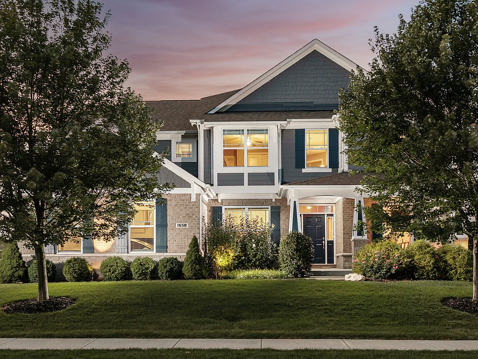 Popular Carmel neighborhood Westmont, Are you looking for ONE OF THE BEST lots you will find on the market, BEAUTIFUL home positioned perfectly on the picturesque pond lot, experience the utmost privacy in the backyard and driveway, 3-car side load garage with extra depth feels like 4 car garage, as you walk up to the front steps of this home just it feels different, pride of ownership immediately shows, charming covered front porch perfectly landscaped, shining entry hall greets you, stunning formal dining room with gorgeous real wood wainscotting, the gourmet kitchen, granite counters, stainless appliances, double ovens, subway tile backsplash, combination white kitchen cabinets and wood colored center island and it all opens to breakfast room and 2-story great room with floor to ceiling windows, experience the 2-story stone fireplace hearth just gorgeous will knock your socks off, all positive vibes as you look out the windows to scenic pond with no neighbors directly behind you, main level den on the other side of the living space allows private space for taking care of business, off the garage you have a catch all space for shoes, jackets and backpacks plus main level laundry room, the 2nd level is where you will find 4 spacious bedrooms plus 3 full baths, the upper primary suite is what you would expect, large owners suite, double sinks, jacuzzi tub plus separate shower, custom closets exactly what you would expect, the finished basement is used as exercise room, music room, billiard room and a full Chicago style bar to watch the "BIG GAME" or just entertain and entertain family and friends, full bathroom in basement, the backyard is incredible, huge concrete patio with privacy wall, large well manicured backyard on the pond, the sideyard is spacious and very private on both sides plenty of mature landscaping.
