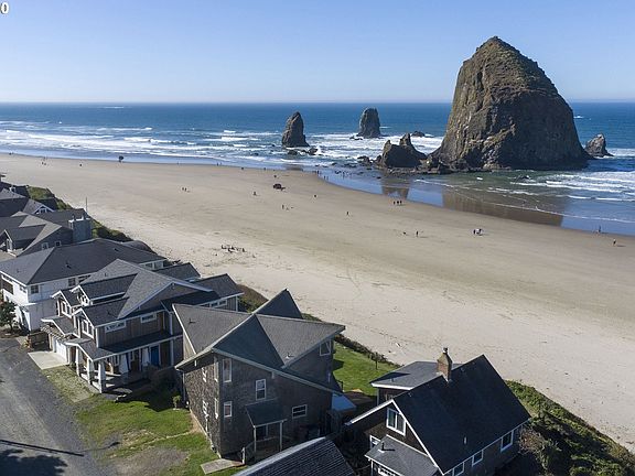Panoramic ocean view from all three levels of this uniquely designed home. Open floor plans lets you feel part of the ocean, surf and wildlife surrounding Haystack Rock. Enjoy crashing waves, eagles and puffins and glorious sunsets from your front room, deck or bedroom. This newly remodeled three bedroom home offers a spacious master suite. The third floor bedroom can be a roomy retreat or a creatively designed bunk room