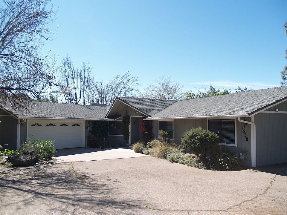 Mountain living at its best! This fantastic single story home delivers breathtaking sunset and westerly views of the local mountains and valleys. Updated in 2005 this home has what you are looking for; granite kitchen counters with a newer JennAir cooktop; stainless vent hood, oven and microwave; a rock fireplace in the family room; formal dining room; a formal living room with floor to ceiling windows to enjoy the view; tiled flooring; recessed lighting, ceiling fans, plus, forced air heating & cooling. Other features of this home are: upgraded bathrooms with tiled counters and decorative backsplashes; a master bedroom with a sitting area and a sliding glass door to one of the rear patios; 2.7 acres of mature landscaping, a garden area and a natural spring stream at the bottom of the property; the home receives its water from Padre Dam Water but it has a well for the landscaping; if you need more room there is a separate dirt pad and driveway to the side of this home for additional storage or parking for RV's, boats, etc.; did I mention this home even has a chicken coup in place; a storage shed to the left of the garage and room to park numerous cars in the driveway or next to the home.