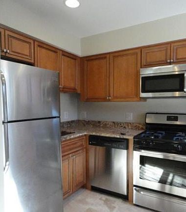 The two-story townhouse offers 888 sq. ft. of comfortable living space. The home includes central air and heating, in-unit washer and dryer, dishwasher, and a bright open layout. Enjoy hardwood floors on the main level, a fireplace, carpeted upstairs, and a kitchen with stainless steel appliances, granite counter tops, and ceramic tile flooring.