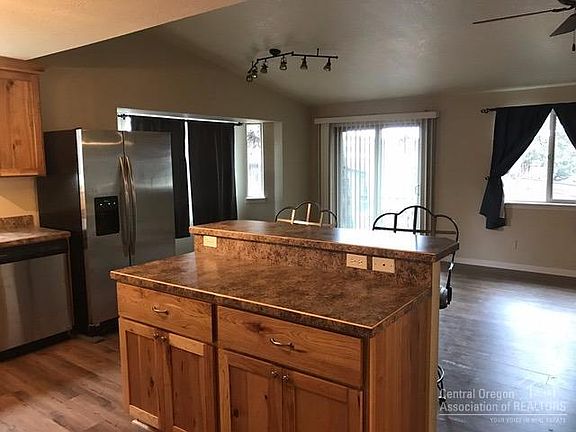 Completely remodeled Kitchen w/ SS appliances, adjustable lighting, Custom floor to ceiling crown molded hickory cabinets. Special features include large pantry cupboard, super-Susan corner cabinet, soft close drawers, pull out shelves. Kitchen opens to the living/dining area w/ additional cabinets to create an island w/ raised breakfast bar. Fresh paint, new energy efficient vinyl windows & slider. Garage has fresh paint, shelves, cabinets & new Insulated steel backed garage door & opener w/ outdoor keypad