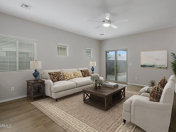 Here's the home you've been looking for! This move-in ready home was recently updated and features 2 bedrooms, a den, 2 bathrooms, and a 2-car garage. This meticulously maintained home features an open great-room floor plan with an eat-in kitchen, new LVP flooring throughout and brand new interior paint. The spacious primary bedroom includes a large walk-in closet and private bathroom. The office/den features a private exit to your low maintenance backyard. Take in the stunning mountain views from the covered front porch or step out back to enjoy your covered patio with extensive use of pavers offering multiple seating areas. All of this is located within the gated subdivision of Bel Agave. Bel Agave is an active adult community that includes a heated pool, a putting green, a pickle ball court, a pool table, a workout room, a dining area with a full kitchen and more. Conveniently located just off the 60 freeway offering easy access to shopping, multiple golf courses, hospitals, restaurants and more. Move this one to the top of the list and get out there before it's too late!
