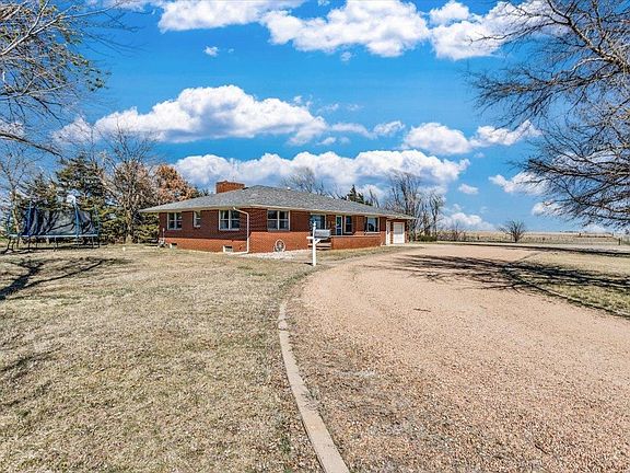 Experience the charm of country living with nearly 1 acre of prime real estate. You wont want to miss out on this beautiful 2 bedroom 2 1/2 bathroom home located just off of Highway 42. Wichita is only a short 20 minute drive away. This home features a recently remodeled open floor plan including the living, dining, and kitchen area as well as a recently remodeled main bathroom. The oversized two car garage features an additional shop area off the back with its own full sized bathroom. Out back, enjoy the large patio area, space to roam and two storage buildings. This property offers a harmonious blend of comfort and style, making it an ideal place to call home.