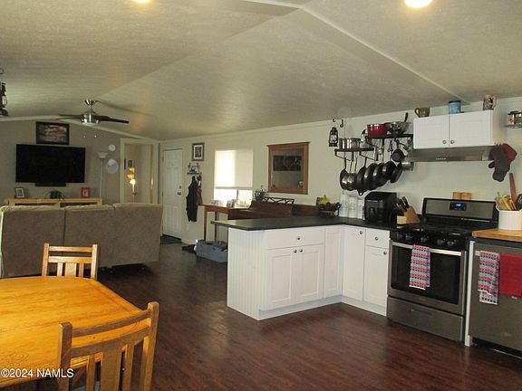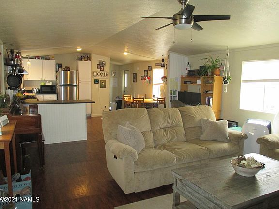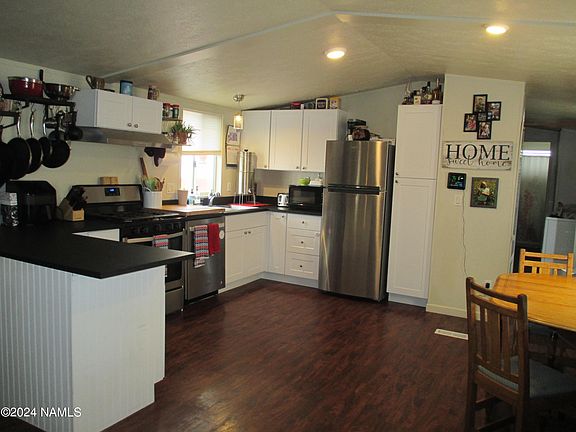 This charming property presents an ideal chance to secure a budget-friendly residence in Flagstaff. Nestled in a desirable west side location. conveniently situated near downtown and NAU. Revel in the open-concept layout, featuring a split floor plan for added privacy. The kitchen offers hard surface countertops and stainless appliances. The property boasts a detached two-car garage with bonus storage space and a Trex deck, perfect for outdoor relaxation.
