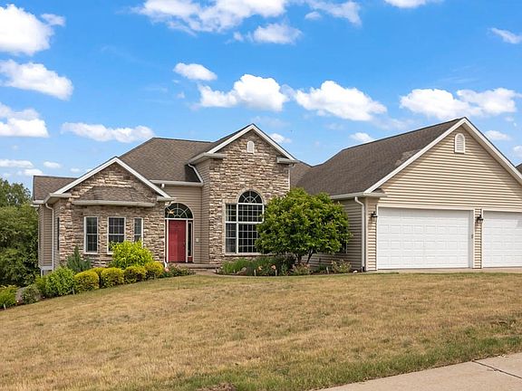 This executive home is set in Bear Creek Estates. It boasts over 3400 sqft of finished living space. This executive ranch has 5 bedrooms, 2 fireplaces and an office. The main floor consist of a master suite with private bathroom and 2 additional bedrooms and bathroom, formal dining room, fireplace kitchen, eat in kitchen, executive office and laundry room. The basement is a walkout with 2 additional bedrooms, bathroom, fireplace, full walk behind bar, storage area with sink and cabinets and another laundry hook up. The outside has a huge fire-pit built up with stone. The yard has a private walk into the tree area that is private. The other part of the yard has a childs playset by Rainbow and a large open yard. This executive home is a rare find. Don't miss it with a blink of your eye. Schedule to view it today.