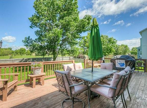 Start the BBQ! Deck in spacious fenced yard backing to green space is ready to entertain or enjoy a relaxing summer evening. Featuring new exterior paint, newer roof & gutters plus hardwood floors on main. Living room w/fireplace & floor length windows. Kitchen pantry, bar & abundant cabinets space opens to dining room. Pampering master w/walk-in closet & double vanity. Finished basement features media & rec rooms plus 3/4 bath & storage. Bonus loft storage in garage plus convenient exterior door.