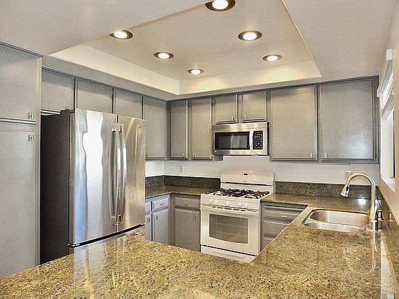 Welcome to BEACH Living in this Spacious, newly remodeled, light & breezy 2 Bed, 2 Bath + 230 s.f. loft. TOP FLOOR, End Unit Home, converted from 3-bedroom INTO a 2 Bedroom making an oversized (27 foot wide) living area with LOTS of OUTDOOR living area, including a HUGE, PRIVATE Main En-suite Balcony! Wired for SOUND throughout! PRIVATE GARAGE +1 parking, Controlled Access Gate, Pool + amenities. GORGEOUS Remod -Stunning vaulted ceilings hang over a massive open concept living room with fireplace -Newly upgraded, ultra-modern bathrooms: quartz counters, faucets, mirrors, and hardware -Kitchen with granite counters and beautiful charcoal cabinets -All kitchen appliances included, with full-size refrigerator/freezer (filtered water & ice) -Travertine floors in living spaces with NEW vinyl plank floors in the bedrooms -NEW lighting, including remote controlled ceiling fans in every room -New window coverings: blackout curtains in master & light-filtering curtains & blinds otherwise -Dedicated laundry room with storage -Finished and carpeted loft; previous tenants used as their teenager's bedroom -Copious additional storage accessed from the loft -Built in 6 speaker system for music in each room OUTSIDE SPACES -Expansive view of streams, trees, and western sky -TWO large and private balconies -Spaces for two cars: -One single car garage (with remote) and storage -One reserved parking space in nearby lot COMMUNITY -Gated,Controlled Entry -security cameras -Heated pools and jacuzzis -BBQ area with clubhouse -Tenant pays: electricity, gas, and internet. -Owner pays: hot water, water, heat, trash, and gardening "BRING YOUR LIFESTYLE HOME!" Landlord pays for hot water, water, heat, trash and gardening. Tenant pays gas, electric & cable TV & Internet. No Pets/Smoking. Big 1 car garage AND an assigned parking space for residents, lots of guest parking!
