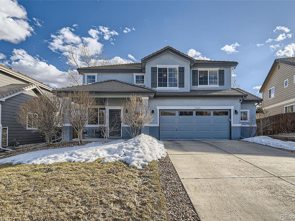 Welcome home to this immaculate two-story home in the highly sought after neighborhood of Antelope Heights in Parker, CO. This home includes an open interior layout, an oversized open loft thats perfect for a home office or converted 4th bedroom, premium concrete tile roofing, this one’s sure to impress!! The home also backs to a large greenbelt, which provides excellent privacy in the backyard. High ceilings and natural light welcome you into the front great room, currently used as a music room, before entering the living area. The entire main floor was recently updated with premium wood grain tile! The openly laid out living room flows into the dining area and kitchen area before exiting out back to your large yard. The kitchen area includes newer stainless steel appliances, granite countertops, and a pantry storage area. All living space is above ground! No basement at this property, like half of the neighborhood, so nothing to finish or heat and cool below grade. The two-sided fireplace between the great room and living room adds an element of comfort and the oversized two car garage is a great fit for larger vehicles with extra room for a workshop or outdoor activities storage. Upstairs, brings you into a spacious loft, currently used as a home office and easily converted into a 4 bedroom. The master suite is down the hall which includes a 5-piece master bath, walk in closet, and views of the greenbelt from your bedside. Two additional bedrooms are across the hall which share a full bathroom. Out front is a shaded, covered front patio for relaxing with a morning coffee/tea or relaxing during the day in this quiet neighborhood. You are walking distance to parks and community trails, and situated in an excellent school district with top rated Douglas County Schools, including Gold Rush Elementary School which is a few blocks away. Highway access is just 10 minutes away, Park Meadows Shopping and Restaurants just 15 minutes away.