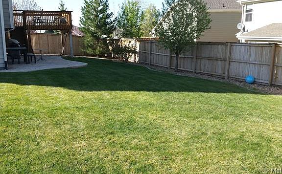 Gorgeous two story home in Parker's desirable Bradbury Hills. Easy access to major roads but on a quiet serene cul-de-sac. Short walk to community pool and parks. Bike trails abound. Open and airy floor plan with high cathedral ceilings. Large fenced backyard with deck, stamped concrete, and actual turf from Mile High Stadium(conversation piece)!! Your master bedroom is a private retreat with 5 piece bath and huge sitting area to relax or use as an office/study/library. Updated gourmet kitchen with new cabinets, farm sink, granite countertops and huge pantry. Great room with fireplace. Finished basement, solid hickory flooring throughout 1st floor. Full garden level basement. Great city views!! Upgraded appliances and pride of ownership throughout.