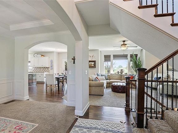 Beautiful family home on cul-de-sac within the boundaries of the excellent Olathe School District. Open floor plan, large kitchen pantry, stainless steel appliances and gas range. Master suite has large tub, separate shower and a double vanity. Large yard backs up to a 10 acre single family estate. Excellent low maintenance composite deck with lovely landscaping. Subdivision has park with hiking and biking trails. Community pool is within easy walking distance. Move in ready!