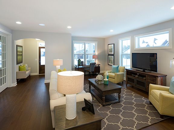 This beautiful architect designed, two story floor plan is located in Spirit of Brandtjen Farm (Lakeville). The home showcases 3,400 finished square feet including 4 bedrooms, 3.5 bathrooms and a 3-car garage. Other key features include: Beautiful, east rear facing homesite overlooking eight acres of green parkland Gourmet kitchen featuring designer wood chimney hood, 36? drop-in gas cooktop, stainless steel appliances, granite countertops and gorgeous ceramic tile backsplash Prep kitchen located off of the main kitchen area, ideal for entertaining Wood flooring in foyer and extended into kitchen and gathering room Gas fireplace in gathering room with custom built-ins Spacious upper level bonus room Jack and Jill bathroom for bedrooms 2 and 3; bedroom 4 features private on-suite bathroom Large rear cedar deck with aluminium rail and stairs Professional landscape and irrigation package LP SmartSide siding with 4-sided architecture Enjoy neighborhood amenities including the community center, workout facility, outdoor pool, fire pits, play area, basketball court, sand volleyball, miles of walking trails, open green space, lakes and much more! *Prices, square footage, and availability are subject to change without notice. Photos and/or illustrations may not depict actual home plan configuration. Features, materials and finishes shown may contain options that are not included in price.