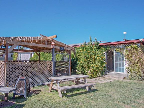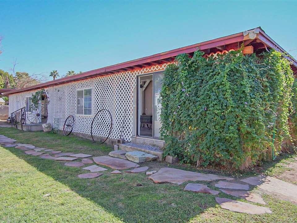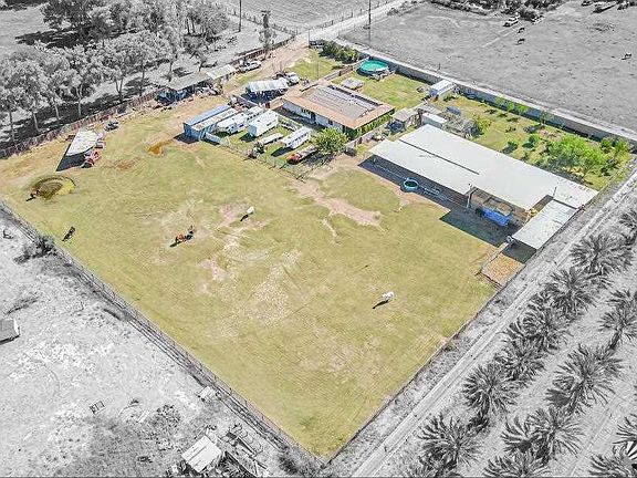 Equestrian Oasis - welcome to this spacious 1,568 Sqft double-wide nestled on 2.75 acres of horse-friendly property. Enjoy new flooring/baseboards, 4 energy-efficient mini splits & a freestanding wrap-around porch w/lush living wall & 3 evaporative coolers. 8 generously sized horse stalls measuring 24x24, goat stall at 10x10, & cow pen spanning 15x40. Fenced all around w/above ground pool, hot tub & abundant fruit trees. Nestled discreetly off AVE B, a peaceful retreat while still being close to amenities.