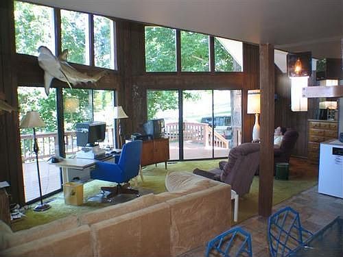 Large A-fram in very desirable PomOsa Subdivision. Community concrete boat ramp on Truman Lake, just down the street, paved road, community water. 26x11 deck on front, 26x6 deck on back. 30x30 shed with 12' doors.