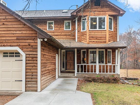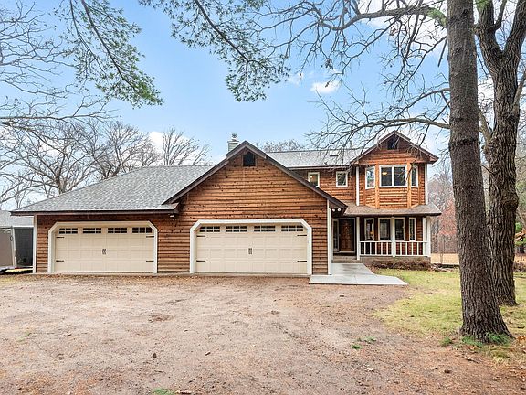 Perfectly tucked away on a quiet cul de sac on 5.14 acres. Located near the beautiful Sherburne National Wildlife Refuge with horse trails. Walk up to welcoming front porch 2 story with attached 4 car garage. Enjoy the wildlife and room to roam! Want chickens? There is a coop! Want room for toys and workshop? You got it in this 28x40 outbuilding/garage with huge 13x39 multi-purpose loft + 6x40 open air porch. MANY improvements - roof & siding (2022), newer appliances, furnace/AC and whole house Kinnetico water treatment system, new front sidewalk. Spacious living room opens to informal dining. Huge kitchen opens to lovely 3 season porch/deck overlooking rolling acres. Walkout lower level with cozy wood burning stove. There is lots to love here! See supplement for list of updates and septic compliance cert.