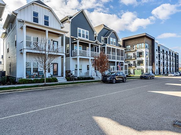 Rarely available Silo Bend cottage-style home w/ open living/kitchen/dining & amazing views over the Cumberland River natural aquatic sanctuary. With a slight turn of the head, one can even watch the legendary Nashville 4th of July Fireworks show from either of two balcony patios. Inside, you'll find a decadently upscale home w/ fine finishes in each area, practically indestructible hardwood floors, & custom wood plantation-style shutters throughout. A first level ensuite bedroom is convenient for a home office or overnight guests who prefer fewer steps. Also on the main floor, the two-car attached garage has been outfitted with resilient epoxy flooring & helpful built-in storage. Whereas most homes in the development have a bedroom on the second floor, this floor plan is wide open thereby giving a much more spacious flow & fantastic natural light. The Primary & Secondary bedrooms on the uppermost floor have vaulted ceilings. All this just moments away from the bustling Nations core!