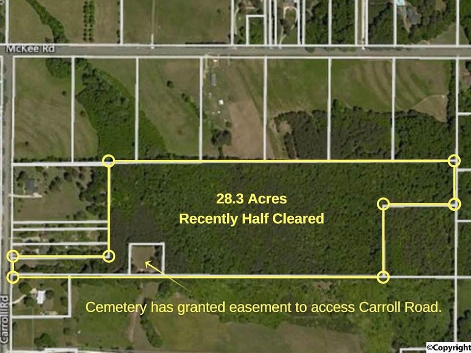 Over 28.3 acres of private land waiting for your new home or mini farm. Center lot with ingress easement, currently sharing a drive with adjacent cemetery. There is plenty of room to add a separate drive onto the site. Will need water and septic installed. Roughly half of the trees on the property were recently cleared, leaving lots of options for housing, horses, farm and more. Truly a wonderful site with tons of privacy!