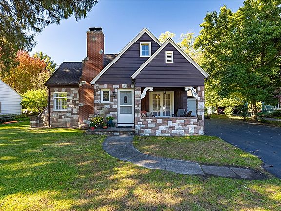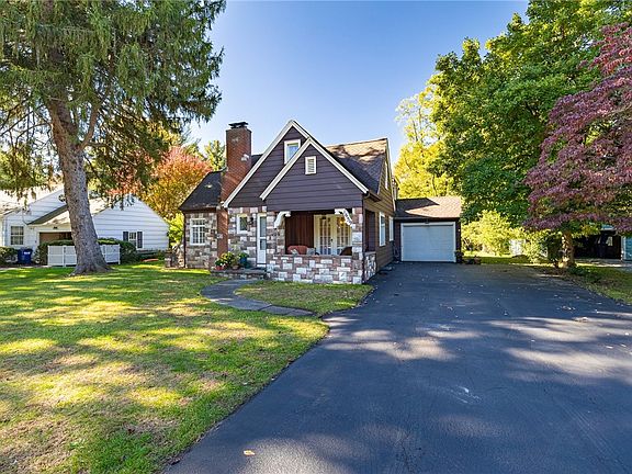 This charming English gentleman’s cottage in Penfield is truly a hidden gem! Nestled on a generous lot, you’ll love the welcoming original front door and the inviting stone porch—perfect for savoring your morning coffee or relaxing in the evening.